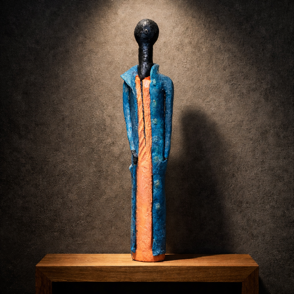 “Nomade” Gardien silencieux en papier mâché façonné à la main finition ciré.