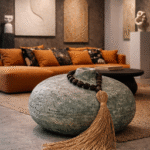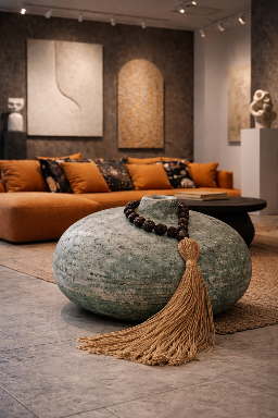 Sa forme organique et sa texture minérale créent un équilibre subtil entre ancrage et mouvement.
