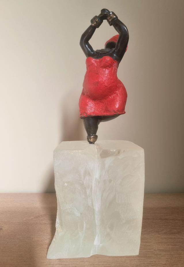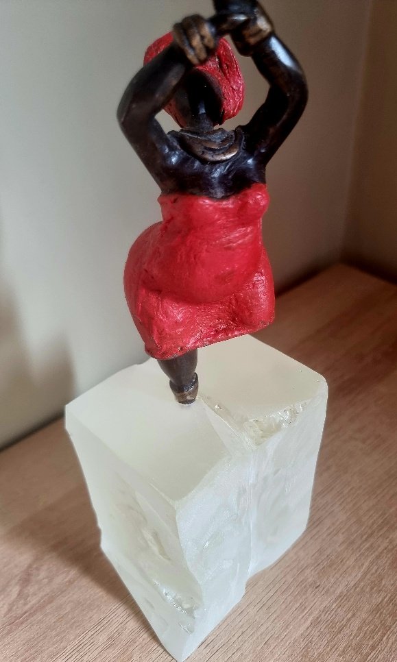 Sculpture en bronze revisitée, intégrée dans un socle en résine travaillé à la main.